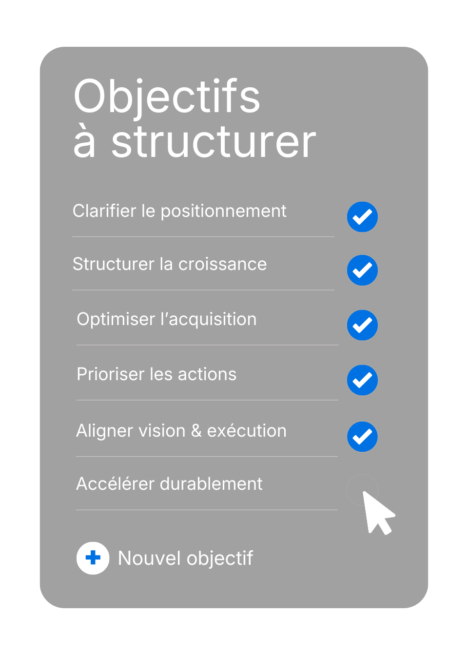 Objectifs alignés. Priorités définies. Plan structuré.